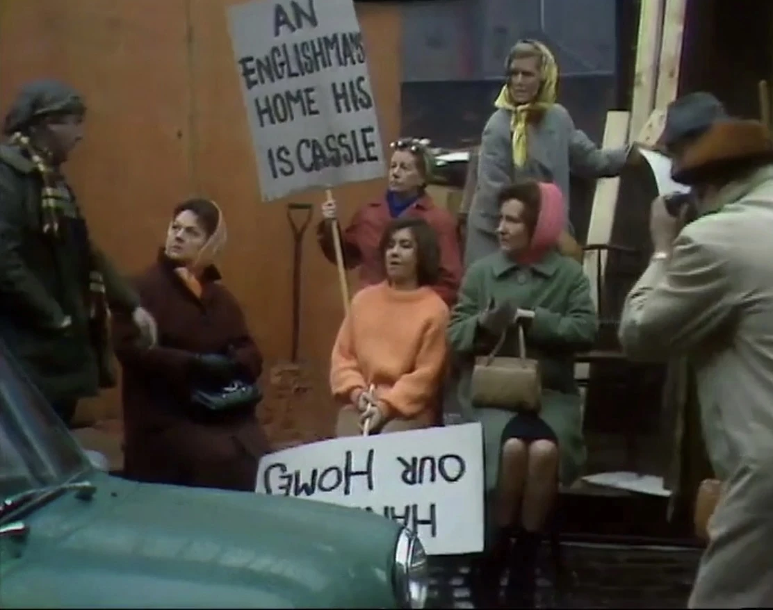 Fred Chapman threatens Emily about the demo. Annie refuses to go on the demo when Lucille asks her. Edith and Ken bicker over the upbringing of Peter and Susan when Ken thinks they're being spoiled. There's little response for the demo as only Emily, Hilda and Lucille turn up. Albert says he'll meet them at the Town Hall as he's getting the bus there and not marching. Ray does an estimate for making some cupboards in the flat for Irma. The two flirt. Billy and Stan consider joining the demo but Len bribes them to stay in the Rovers with drinks. Lucille tells Len that if a peaceful demo won't work she'll organise a violent one but she later loses her nerve. When Annie complains about no one working in the pub, Lucille has an idea. Edith enthusiastically tells Ken that Alfred Tatlock has suggested they sell up in Glasgow and move back to Weatherfield. Maggie and Betty join the other three women as they stage a sit-in at the building site to block the entrance. Fred Chapman calls a digger forward which knocks Lucille over and pours its contents over her feet.