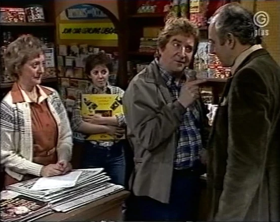 Alf Roberts: "Yes, Albert, what can we do for you? Half a dozen cough drops or half an hour's grumbling?"