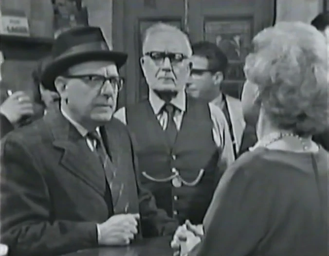 - From Episode 172 (6th August 1962) to Episode 459 (5th May 1965) the programme featured a standardised cast list for the regular characters. This means that in this episode the following were credited but did not appear: Albert Tatlock (Jack Howarth), Lucille Hewitt (Jennifer Moss) and Len Fairclough (Peter Adamson).