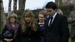 Liam's glad Maria has turned up. Carla's less than pleased to be sidelined. Baby Paul's funeral takes place. Liam and Maria clutch each other at the graveside and sob uncontrollably. Tina calls to see Gail and tells her that she's been to visit David. Gail's pleased they're back together. The estate agent gives Sally and Claire the valuations on their houses. Sally, Kevin, Ashley and Claire shake hands on the deal. The Websters call round to No.4 to look at their new house. Rosie and Sophie excitedly agree which bedrooms they're having. The funeral mourners agree to meet in the Rovers and leave Liam and Maria some time to themselves at the graveside. Maria tells Liam how sorry she is that she didn't tell him the baby had died. Liam forgives her and they agree to try and rebuild their marriage. Gail calls Ted and tells him that she's his daughter. They arrange to meet up. At Sean's suggestion, Marcus agrees to move in with him at No.11 and retrain as a psychotherapist. Maria moves back home with Liam. Carla watches the grieving couple as they enter No.7 and feels totally isolated.