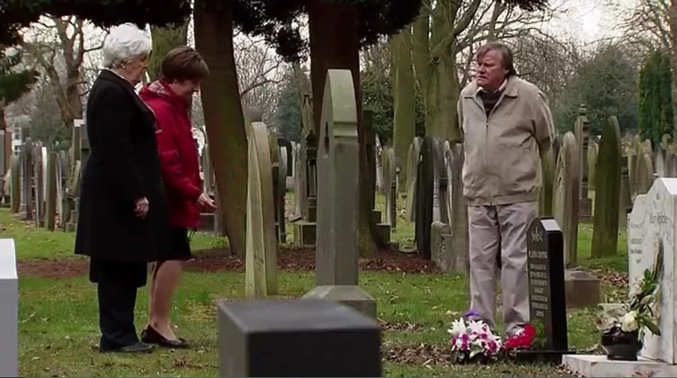 Ryan makes his excuses and leaves. Tina follows him to find out how much he knows. Peter rants at Rob who walks out of the bookies. Finding St. John's headstone, Sylvia, Hayley and Roy pay their respects. They are suprised to find Roy's name engraved as one of his children. Peter's had enough of Rob and tells Carla he can't work with him any longer. Izzy prepares a curry for the meal and tells a shocked Gary that Ryan is one of the guests. When the meal starts, there is a constrained atmosphere between Ryan and Owen and Ryan and Gary. Roy is subdued when they arrive home. Roy is delighted with the train set that St. John left him. Gary gets a moment alone with Ryan and tells him that irrespective of what he heard, he's to mind his own business. The party decamps to the bistro where, under pressure, Ryan admits to Katy that he heard something about a kiss. Rob tells Carla that he wants a share of the bookies or he's leaving and he demands her support. She refuses and they agree that he'll return to Underworld instead. Chesney starts pumping weights as he makes plans to bag himself another woman. Karl grows impatient with Gloria for interfering with the Rovers' rebuild, claiming he wants everything to be just right for Stella. Gary tries to explain himself to Katy but she won't listen. Tina realises Katy knows and she and Gary worry that soon Izzy will know also.