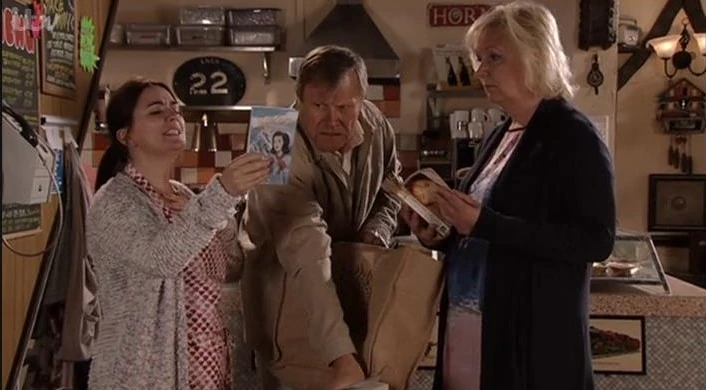 Dennis tells Norris he intends to win Rita back and won't be beaten by him. Rita tells Norris again that her marriage is none of his business. Andrea has given Lloyd the excuse that she bolted from the party due to a migraine. Although he tells Steve that he's happy about things, his face betrays his concerns about their relationship. Rob hears that Peter has sacked his solicitor and wonders why. Lloyd happily prepares the flat for Andrea's arrival. Leanne asks Sophie to babysit Simon while she attends a job interview. Tracy comforts Deirdre when she breaks down about Peter but is puzzled when she cuts off a call from Ken, saying that she'll speak to him later. Roy goes through Hayley's old books for a jumble collection for Emily and finds a library book that's been overdue for several months. Torn by conflict, Andrea turns up at the Rovers and confides the truth to an astonished Michelle. Emily tells a questioning Dennis that she's sure Rita will forgive him in time. Andrea plucks up her courage and tells Neil she's leaving him but doesn't tell him about Lloyd. When Deirdre and Tracy visit Peter in prison and ask why he sacked his solicitor, he's gutted to realise they assume he must be guilty. Sophie and Maddie look after Simon who refuses to talk to them. Maddie understands what he's going through and bets Sophie she can get him chatting in ten minutes. Roy goes to the library and is furious to hear that's closing and being replaced by a Freshco store. Anna suggests a protest. Dennis asks Julie to stage a row with him and throw him out, hoping that Rita will take him in. Steve guesses from her manner that Michelle knows something about Lloyd and Andrea and demands to know what it is...