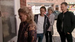 Sarah is paranoid that Callum is after her. Norris is missing Emily. Roy is confused when he receives a speeding ticket in the post. Robert offers Leanne a 30% rise to tempt her back to the bistro. She turns him down. Sarah pays Phelan £200 to put in new locks at No.8 to secure the house. Kirk has taken Beth's insults to heart, having walked out of the reunion before she told Lindsey how much she loved him. Roy thinks Alex was driving the Woody and demands to know if he took it without permission. Alex denies the accusation. Kylie feels that Sarah needs help and, against David's wishes, tells Gail and Bethany about Lee holding her hostage and her belief that Callum is alive. A worried Billy tells Todd that Lee has disappeared. Todd encourages him to forget Lee. David warns Kylie that more secrets could come out if Sarah sees a psychiatrist. The Platts gather at Nick's flat to discuss what to do about Sarah. Bethany thinks they're exaggerating her problems and accuses Kylie of being jealous of her. Phelan does the work at No.8 and is trying to interest Sarah in having a new door put in for added security when Todd sees him off. Leanne promises Simon she'll raise the £500 to send him to football camp but knows she can't afford it. Fiz suggests that Beth make it up to Kirk in the bedroom. Alex confesses to being behind the wheel of the Woody when Roy prepares to call the police. Believing that Callum will turn up any minute, Sarah locks herself inside No.8 and barricades the door. Alex tells Roy he's sorry for stealing the car. As punishment, Cathy refuses to pay for his driving lessons. Roy feels compelled to report his crime to the police. The Platts can't get into No.8 due to the new locks. Sarah refuses to let them inside and panics when they cause a stir outside, fearing they'll draw Callum to the house. She tries to ignore their calls while holding Harry close. Roy is appalled when Cathy suggests she tells the police that she was driving. Leanne tells Robert she will come back to the bistro, but he only agrees to a 25% rise. She feels bad for not backing Nick. David and Todd can't get the door to budge because of the furniture piled against it. Sarah agrees to let Bethany in as long as it's just her, but the Platts force their way in when she opens the door. Bethany feels guilty for betraying her and is upset to see her as she is. Sarah can't understand why nobody is taking her seriously and accuses her family of being in cahoots with Callum. David secretly calls an ambulance, seeing no other option. Alex goes to Gemma for advice. She thinks he should turn himself in and pretend to be upset about it. He thinks it's dishonest. Cathy is hurt when Roy tells her that he would have reported her if it were her driving. The paramedics arrive at No.8. Sarah begs them to take her somewhere safe. She's taken to hospital to be checked over. Alex tells Roy and Cathy that he's been to the police and was let off with a caution. Roy is satisfied that justice has been done. Phelan tells Jason that he didn't charge Sarah for the work. Billy snaps at Norris when he gossips about Sarah. Beth shows Kirk the sexy outfit she's bought for tonight. When Norris makes a disparaging comment about Beth buying Kirk's forgiveness, Kirk tells Beth that he deserves better. Angered, Beth warns him not to come home tonight. Rita volunteers Norris to put Kirk up as he caused Kirk to be homeless. Cathy can't relate to Roy's clinical stance over Alex. Norris limits Kirk to one night at No.3. They don't know what to say to each other and end up playing draughts to pass the time. David admits that he should have done something about Sarah earlier. Kylie is thinking about confessing to killing Callum, reminding David that they're responsible for making Sarah the way she is.