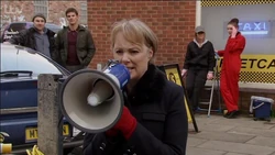 Part One: The Rovers' window is reglazed. Steve decides to give Michelle half of everything and has a valuer visiting later, annoying Liz who wonders where it leaves her. Beth tells Sinead that Chesney has been boxing her things up for her to take. As Rosie and Sophie clean the flower shop windows, Zack makes more lewd comments, witnessed by an annoyed Sally. Nick and Leanne refuse to let Steve into the flat to talk to them. A sympathetic Tracy leads him away. Realising Chesney's meeting with Sinead didn't go well, Gemma suggests it's time he had his revenge. Sally approaches the foreman of the building site and makes a complaint about Zack's sexist behaviour. He doesn't take her seriously and she says he'll be hearing more from her soon. Bethany goes out, telling an annoyed Sarah that she's going to Nathan's. Clutching a megaphone, Sally launches a one-woman protest at the building site with a continuous tirade at the men. Chesney and Gemma put Sinead's belongings on sale in the kebab shop for £1 each. Finding Shona run off her feet and determined to make amends, Gail joins her behind the cafe counter and insists on helping out. Tracy advises Steve to forget Michelle and to go to court for access to Oliver. Sinead finds out about the sale. She, Beth and Daniel rush round there.