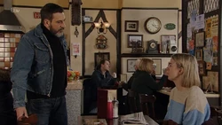Part Two: Peter hears Abi telling Roy that she misses the boat. He thinks she means him and attempts to kiss and make up. Abi calls him a lying scumbag, making it clear that it's the work she misses. Mary discovers Tyrone's ruse when she arrives at No.9 to find it's just the two of them. Izzy suggests that Gina make a grand gesture to show Sally how sorry she is. She goes along with Sean's idea of throwing a party. Kate finds that Rana has invited everyone to the wedding, including those on the reserve list. Amy returns home having had the termination. Mary and Tyrone clear the air, with Mary explaining that she just wanted to feel part of a family again. Sophie warns Gina that Sally won't be won over so easily. Steve and Tracy like the house and put in an offer, which is accepted. As they celebrate, Amy is overcome with guilt over what she's done.